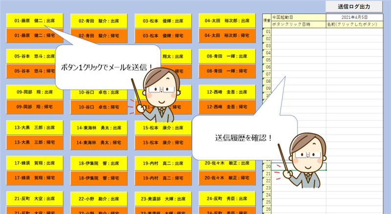 ・メールを送った生徒を同じ画面で確認でき、送信忘れを再確認